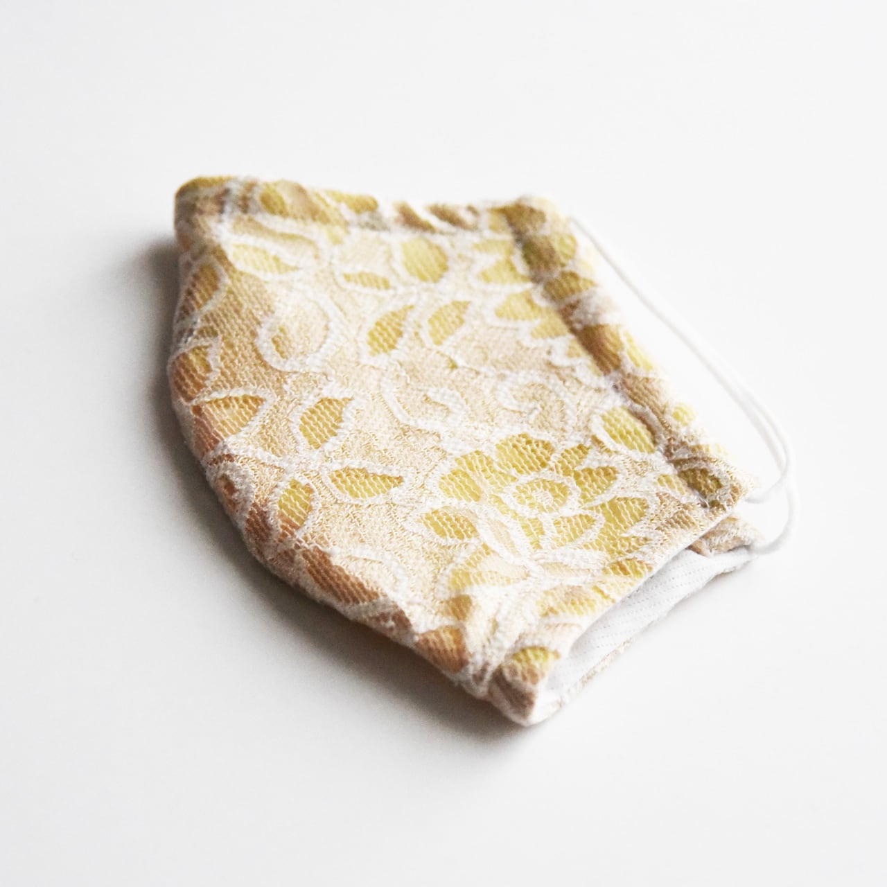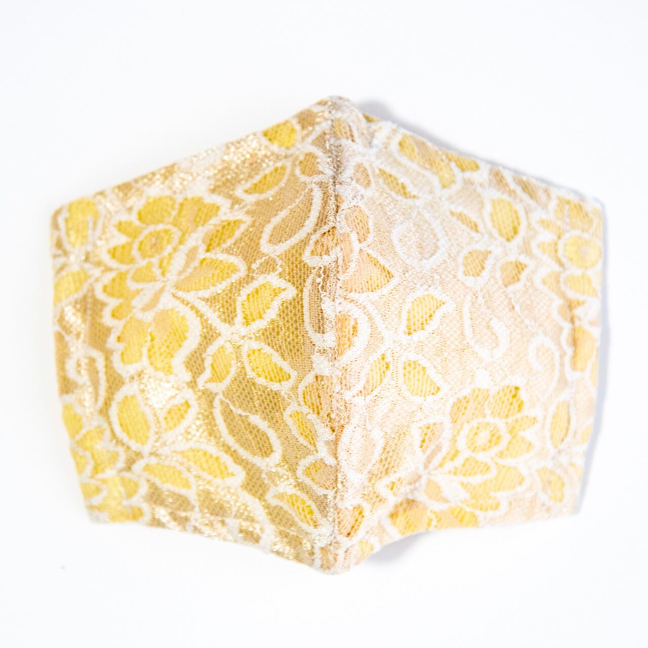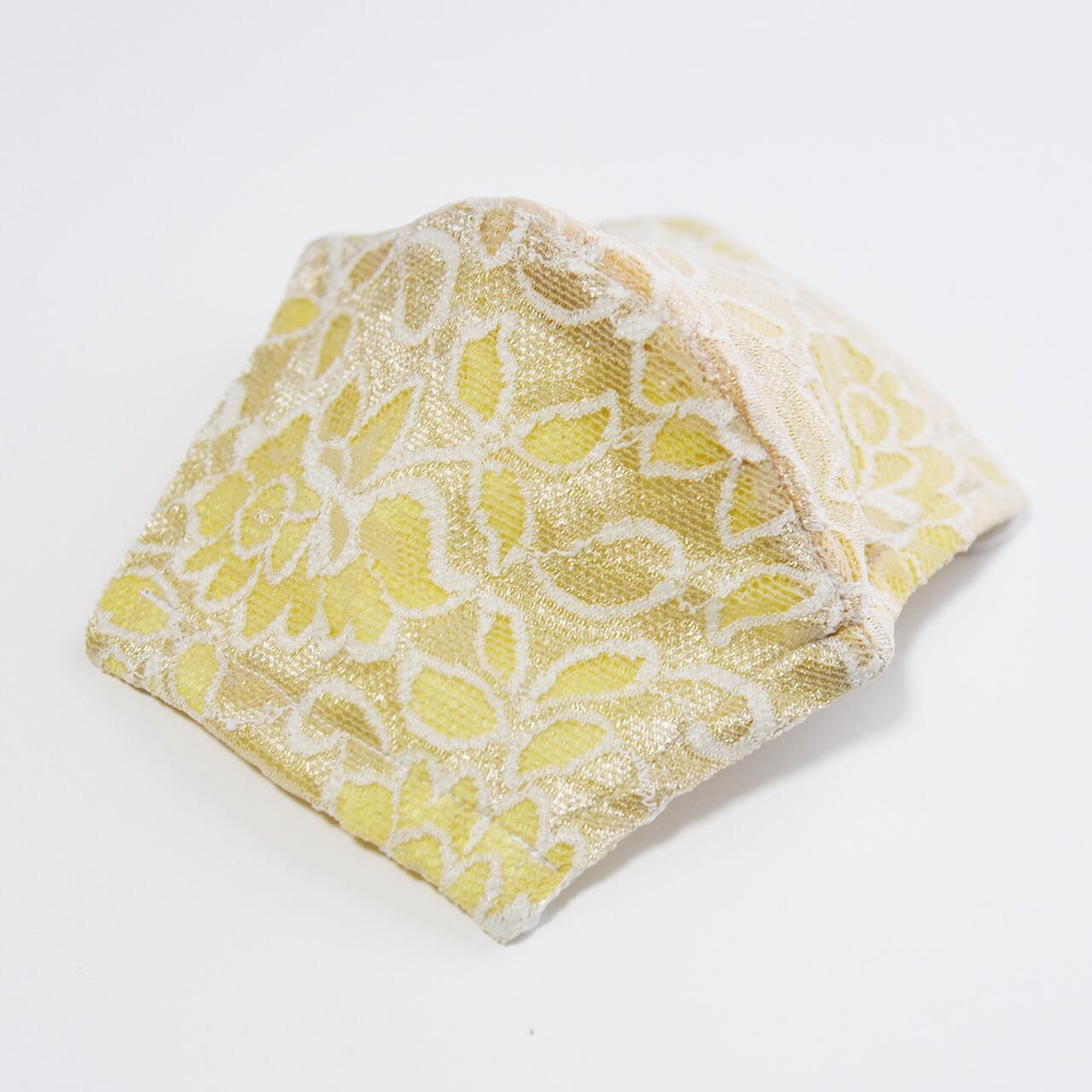 飯能市で生産された「飯能レース」の生地を使って、吉田屋呉服店が仕立てたマスクです。菜の花の色のパステルイエローで、明るいお洋服によく合います。